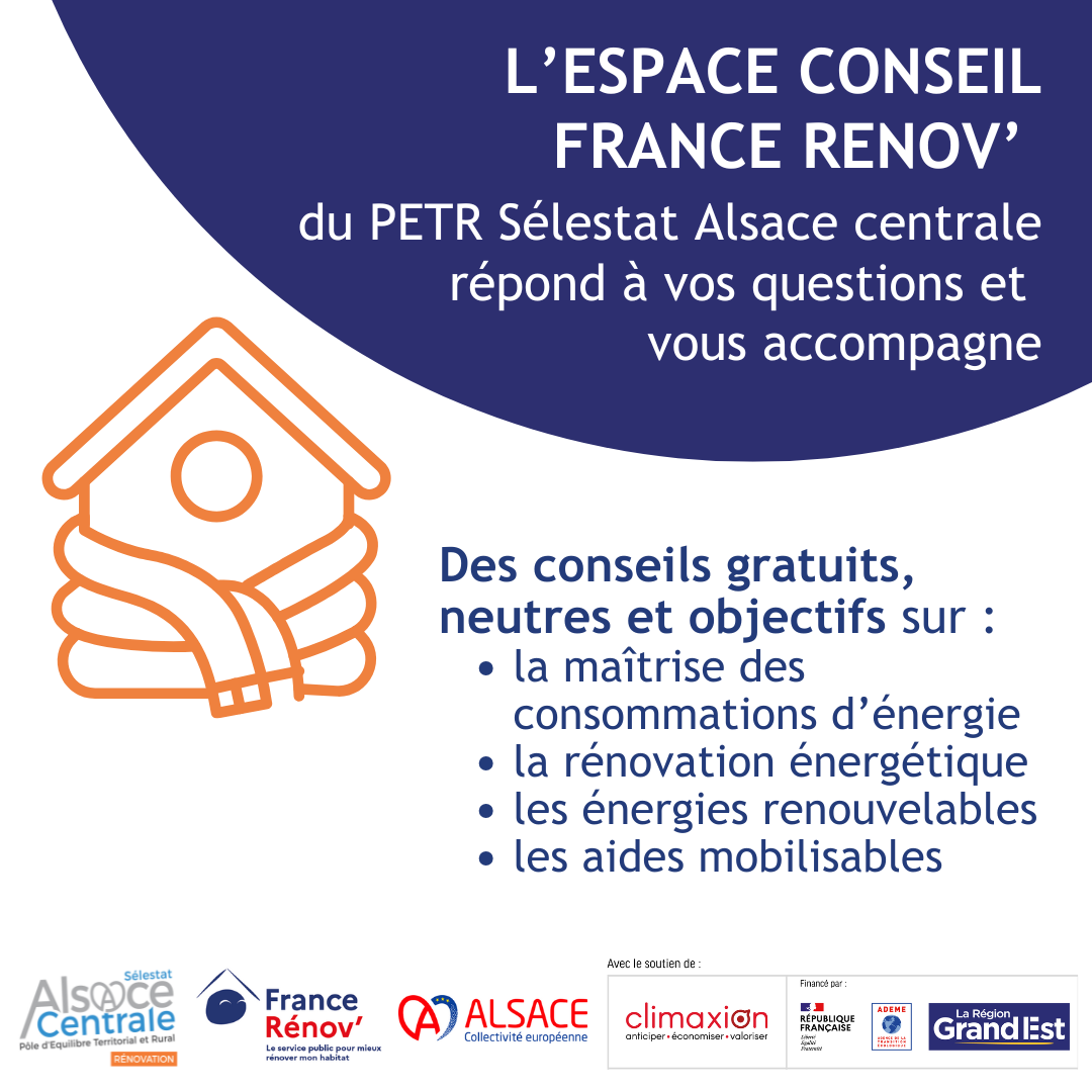 Avec l’arrivée de la saison de chauffe, le PETR Sélestat Alsace Centrale souhaite rappeler aux habitants l’existence de l’Espace Conseil France Rénov’, un service public gratuit et neutre d’information et d’accompagnement à la rénovation énergétique des logements.